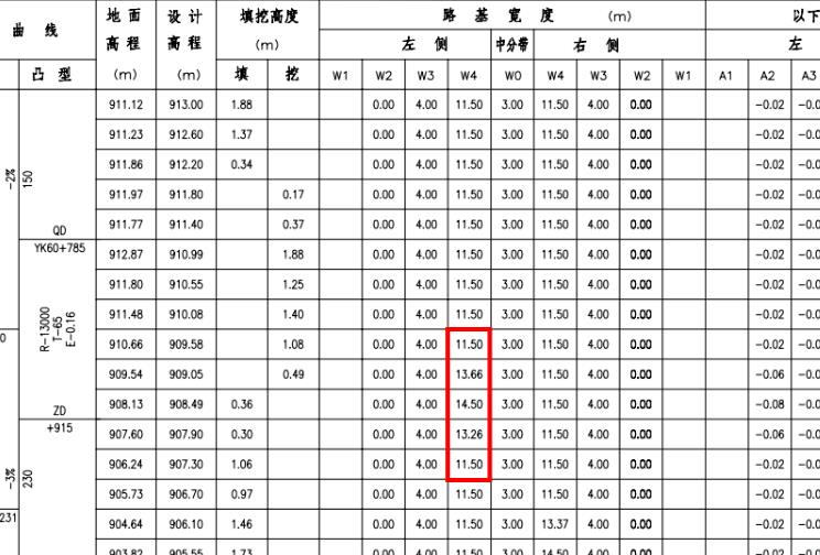 如果设计图纸上有对应加宽点信息如下,可继续在横断面设计中进行编辑: