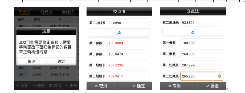 在进行交点添加的时候不必输入下拉箭头展开的四项参数(输入也是无效的),仅仅在软件弹窗进行提示的时候确定进行针对性的确认修改即可