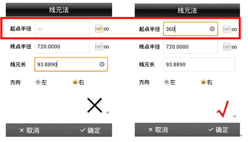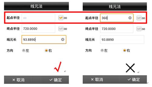 中间段缓曲半径是否由R1->R2,由直曲表中该缓曲的长度Ls,缓曲参数A,JD1内圆曲线半径R1判定:A*A≠Ls*R1