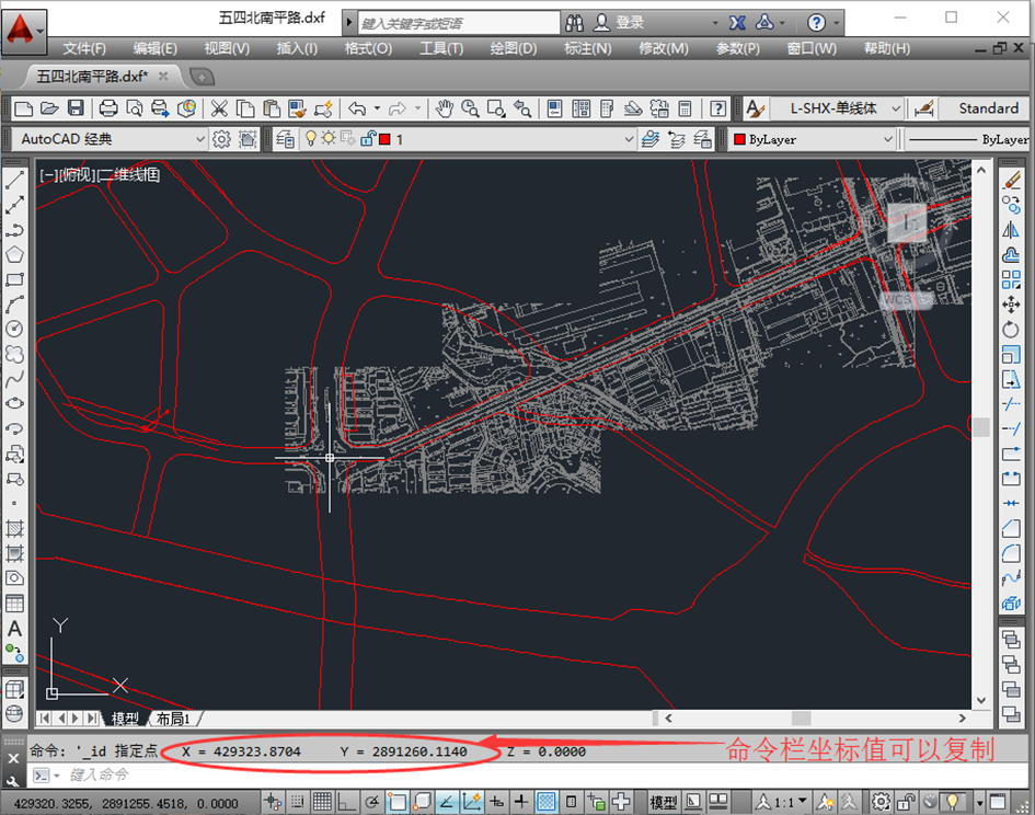 在CAD中使用工具---查询---点坐标获取第一个关联点的点坐标,坐标XY值显示在命令栏(方便在第2步复制XY值,避免人工输入时出现错误)。