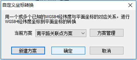 在"自定义坐标转换"页面点击【方案管理】可管理之前添加的关联点方案,如下图: