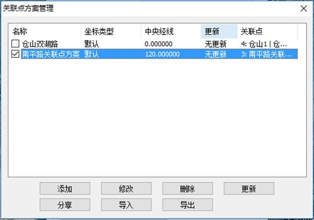 分享:分享勾选的方案给好友 导入:导入关联点方案文件 导出:导出关联点方案为文件