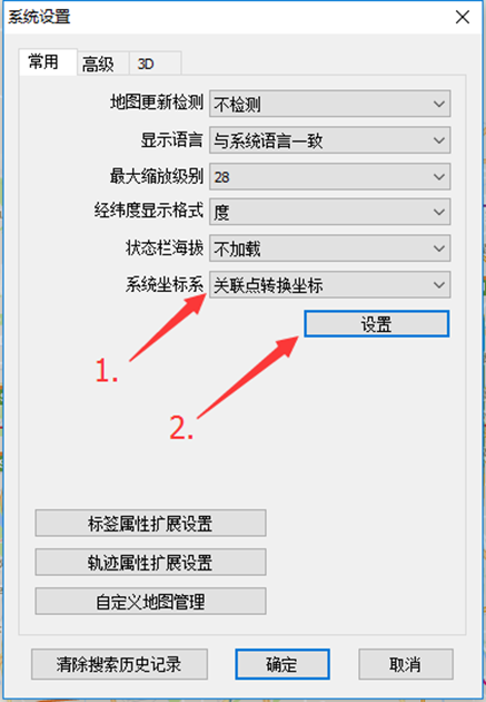 打开:【系统---系统设置】菜单,选择系统坐标系为"关联点转换坐标系",如下图: