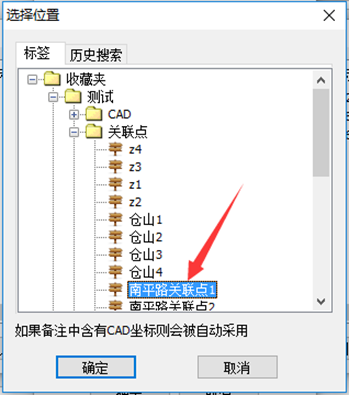 给标签添加名称为:XXX关联点,并添加到收藏夹(标签本身自带经纬度坐标信息,方便后面的第9步选择标签作为关联点时自动读取标签的经纬度,避免人工输入经纬度出现错误);重复第1-3步,添加其它关联点为标签。